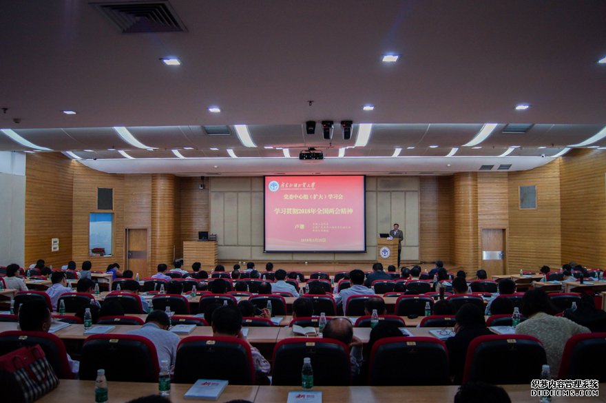 3月29日下午,党委中心组(扩大)学习会在我校北校区图书馆负一层报告厅召开。为全面深入学习2018年全国两会精神,引导广大党员干部深刻领会、准确把握两会精神实质,会议邀请了全国人大代表、台盟广东省第八届委员会副主委、暨南大学教授卢馨作专题报告。校领导,校党委委员,校纪委委员,正、副处职级干部出席本次会议。会议由我校党委副书记李云明主持。